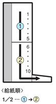 上下2段の棚を1つの棚として使用し、一方の棚に積んだ用紙が無くなったら、もう一方の棚の用紙を給紙します。