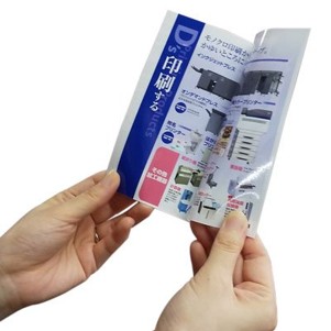 | オフセット印刷やオンデマンド印刷の後にフィルムテープ(ジェミッツテープ)で加工する後糊加工タイプ。フルカラーでキレイな広告や親展ハガキの作成が可能です。 | ![]() |